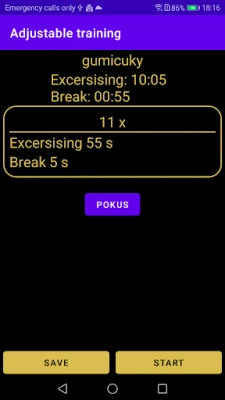 Application enables to time exercises. Application includes 3 types of elements: groups with attribute of number of groups repetition, breaks and exercises, both with attribute of time. These three elements could be ordered anyhow. Groups could be immeresed in each other. This is how you can set however complicately structured training. Most of colours is available in application. Application enables to set loudness independently on loudness of system (could be swittched off). It is possible to forbid screensaver when your exercise is running.