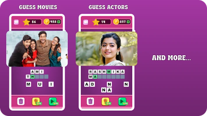 Dive into the world of Tollywood with Guess Telugu Movies and Actors! Perfect for fans of Telugu cinema, this game lets you put your knowledge to the test. Identify iconic movies, famous actors, and memorable scenes. Whether you're a casual viewer or a Telugu movie buff, challenge yourself through levels of increasing difficulty.