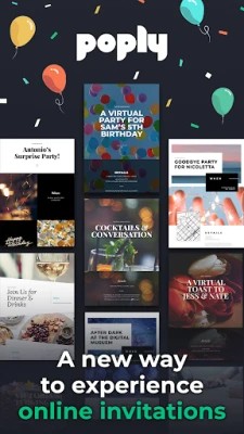 Poply is the modern invitation maker that makes creating invitations easy. Design full-screen, interactive digital invitations and text invitations for birthdays, weddings, holidays, baby showers, graduations, and more. Every invitation is beautiful, customizable, and created to stand out—not a boring copy of paper invites. Share online invitations instantly by text message, email, link, or QR code.