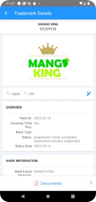View Trademark Information, Owner Information, Goods & Services, Prosecution history among other details. View Trademark documents for any case. All documents are listed with creation and date and document is displayed as a PDF for easy viewing. Your recent searches are preserved for easy access. Trademarks are displayed with most recent searches on the top of the list.